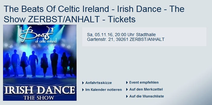 Zerbst: 05.November I "The Beats Of Celtic Ireland - Irish Dance Show"